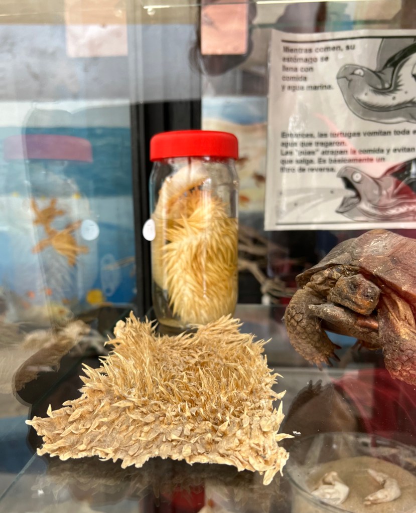 Tillbaka till stan cyklade jag några kilometer för att besöka stadens Valmuseum, och precis när jag kom började en guidad tur på engelska. Här fanns skelett, revben skulderblad från blåval och gråval med mera. Visste ni att havssköldpaddor har en strupe med ”taggar”? Det gör att när havssköldpaddorna av misstag äter plast för de tror det är maneter – kan de inte spotta ut plasten och kvävs till döds. Det bästa vi människor kan göra är att låta bli att skräpa ner i havet och ta med oss skräp från stränderna.