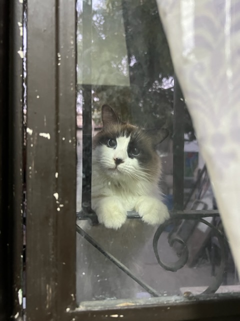Doften av stekt köttfärs nådde liten kattnos, var tvungen att snabbt dra igen fönstret och katten knackade på och ville jag skulle släppa in hen.