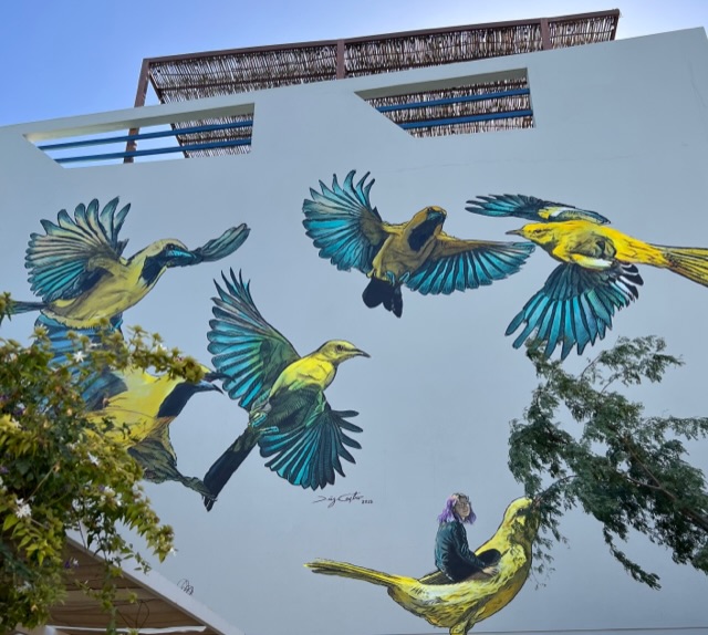På vägen till caféet stannade vi till i en fin liten park med två fantastiska väggmålningar.