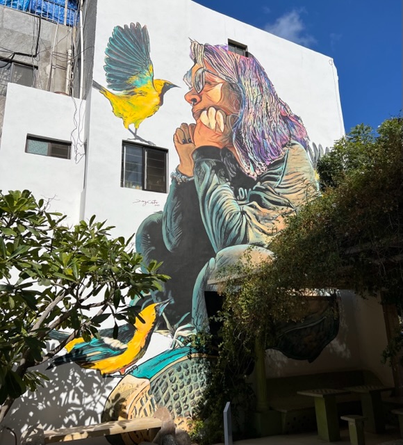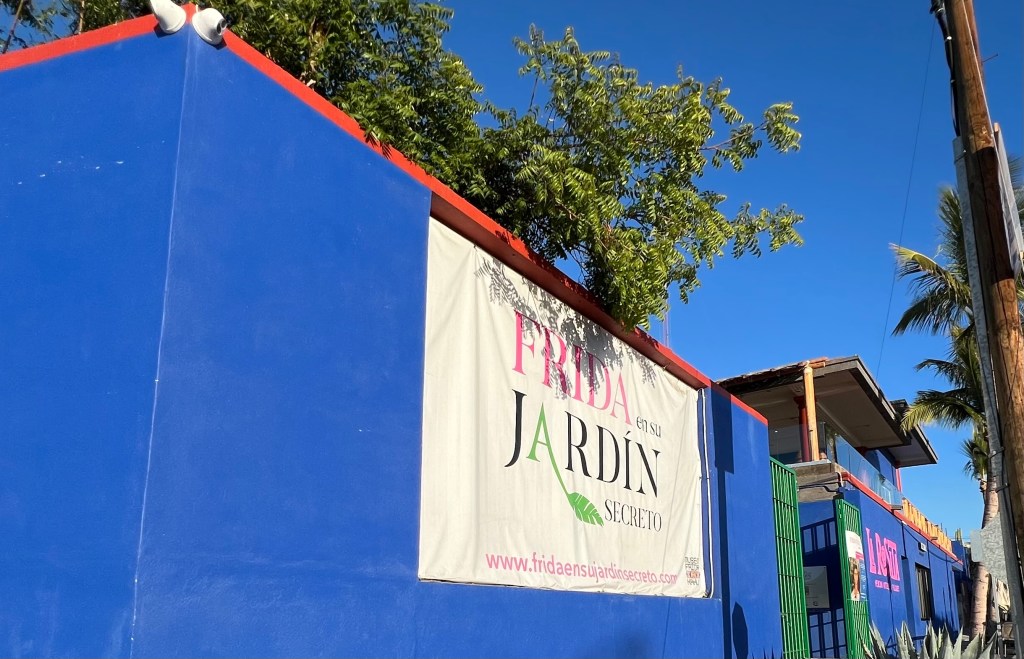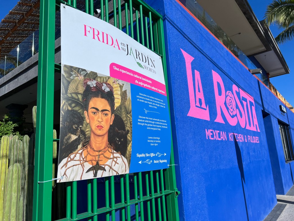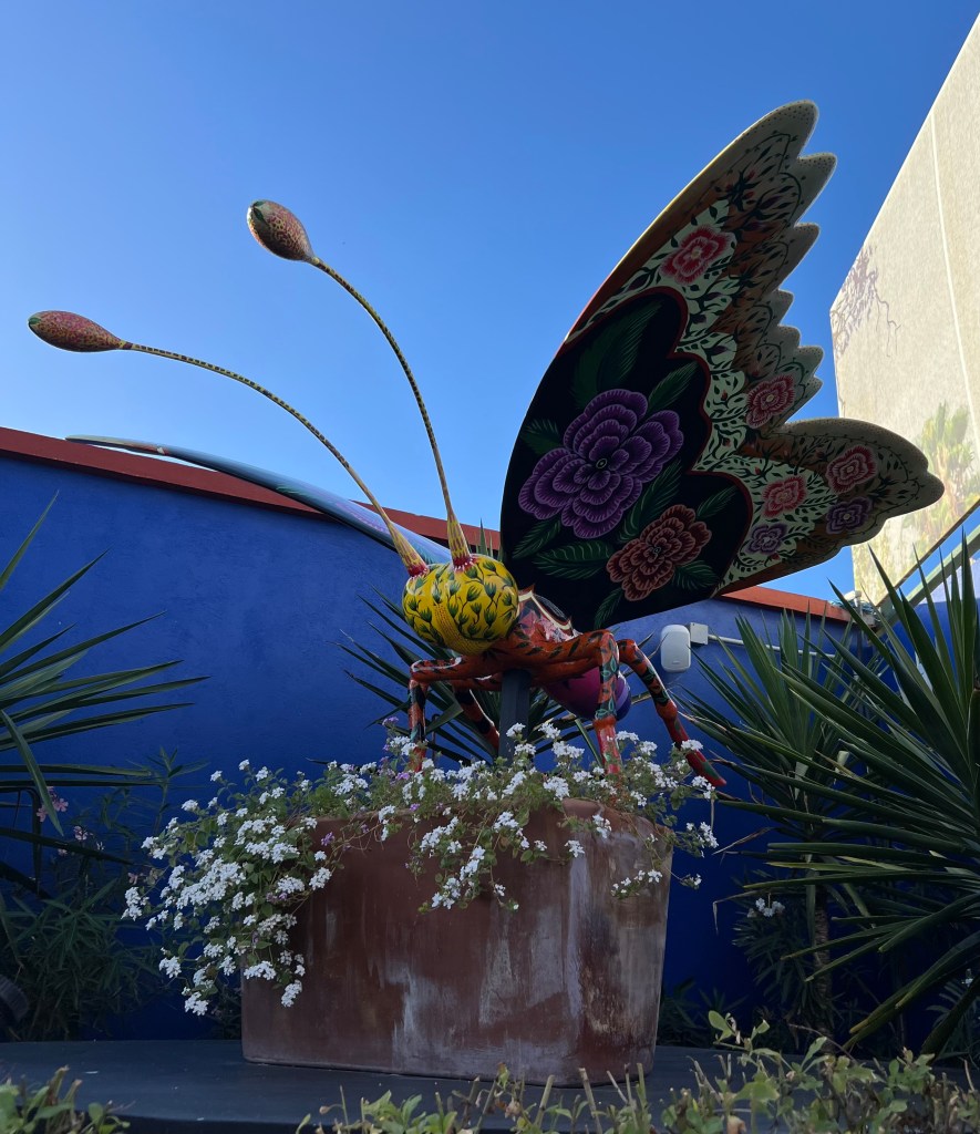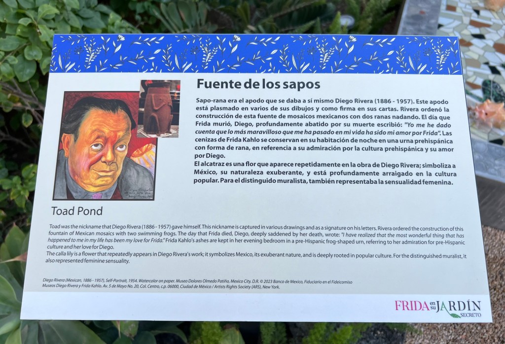 På eftermiddagen åkte de andra för sandboarding men jag cyklade till ”Frida en su jardin secreto ”. Här har de byggt upp en del av Frida Kahlo’s trädgård i det blå hus i Mexico City hon och hennes man Diego River som var en erkänd konstnär och refererade till sig själv som ”Toad” (=padda) bodde i.