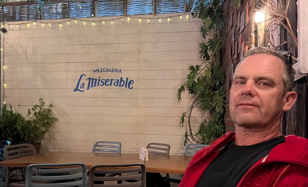 På hemvägen stannar vi på affären där jag handlat mat hela tiden och fyller på vatten och lite chips, på mataffären säljer de också bildäck. Sedan en dusch och ner på stan, lämnar tillbaka våra cyklar och sandboard, passerar kyrkan som är vackert upplyst på kvällen. Vi går för att äta och dricka på en liten restaurang med en mysig bakgård, Les Miserables. De andra volontärerna med den nya tjejen från Danmark sluter upp för en öl. Vi promenerar hem och säger adjö då vi ska åka till Lorento imorgon bitti.