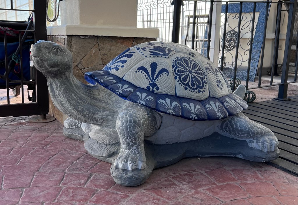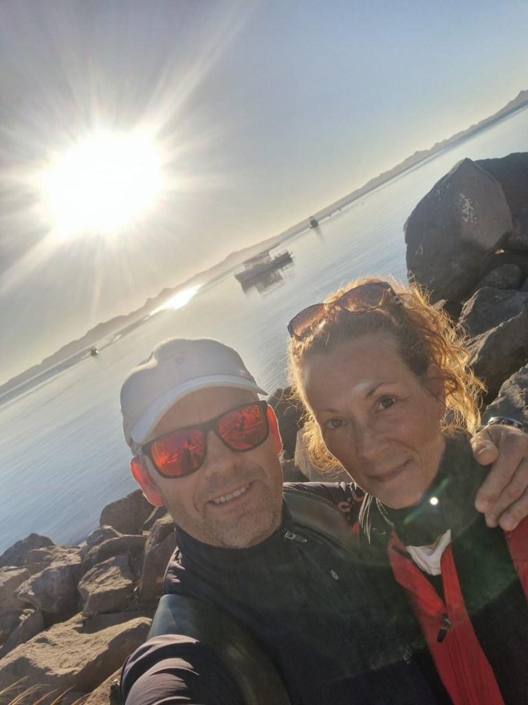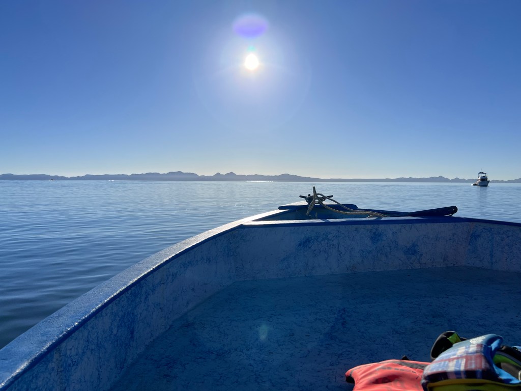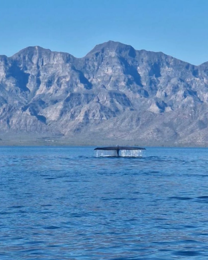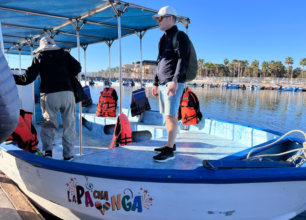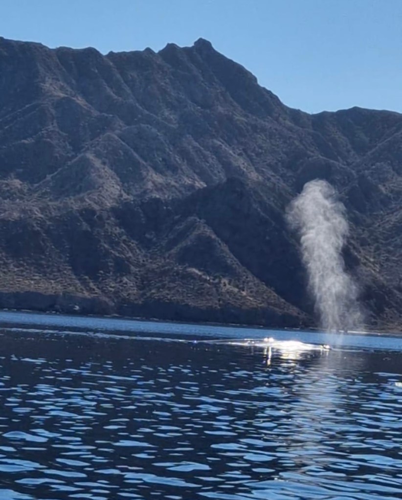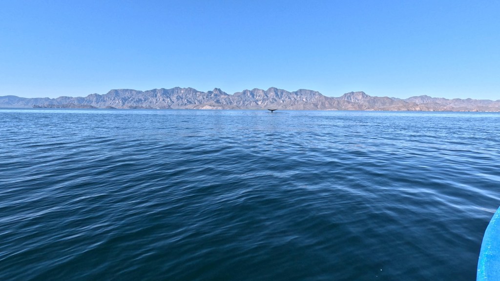 Idag är det en tidig morgon då vi ska ut på blåvalsspan, kl.8 ska vi ses vid valstatyn på Malecón. Vi hänger vid frukosten och får börja äta lite tidigare. Kallt på morgonen ca.15 grader så vi är ordentligt påklädda, men en otroligt vacker morgon och platt vatten med löfte om en underbar dag. Vi möter vår guide och resten av gruppen vid statyn, köper biljett/inträde till nationalparken och drar iväg från hamnen. Innan vi åker tar guiden på en sköldpaddsstatys huvud då det ger tur. I början ser vi 2 knölvalar och resten av vår 5-timmars resa såg vi blåvalar, en sköldpadda flera mobila rays och det ser ut som två vingtoppar som sticker upp ur vattnet. En av valarna bajsade och vattnet färgades orange och stank riktigt illa. Guiden sa att det var parfymen ”Bluewhale No.5” – den blir ingen hit. Lunch på båten under färd, burritos med kött eller bönor och man fyller på dom själv med grönsaker och apelsinklyftor. Företaget vi bokat resan med ”Loreto Sea and Land tours” var otroligt försiktiga och respektfulla mot allt liv i havet – stor eloge till dom och all personal på båten.