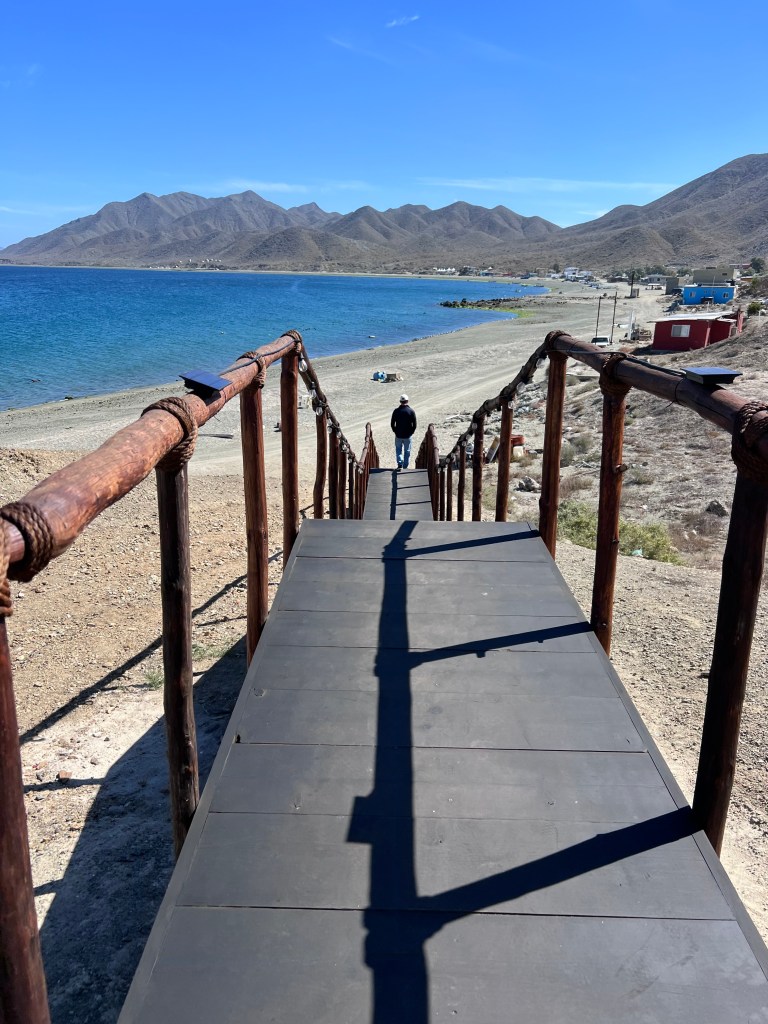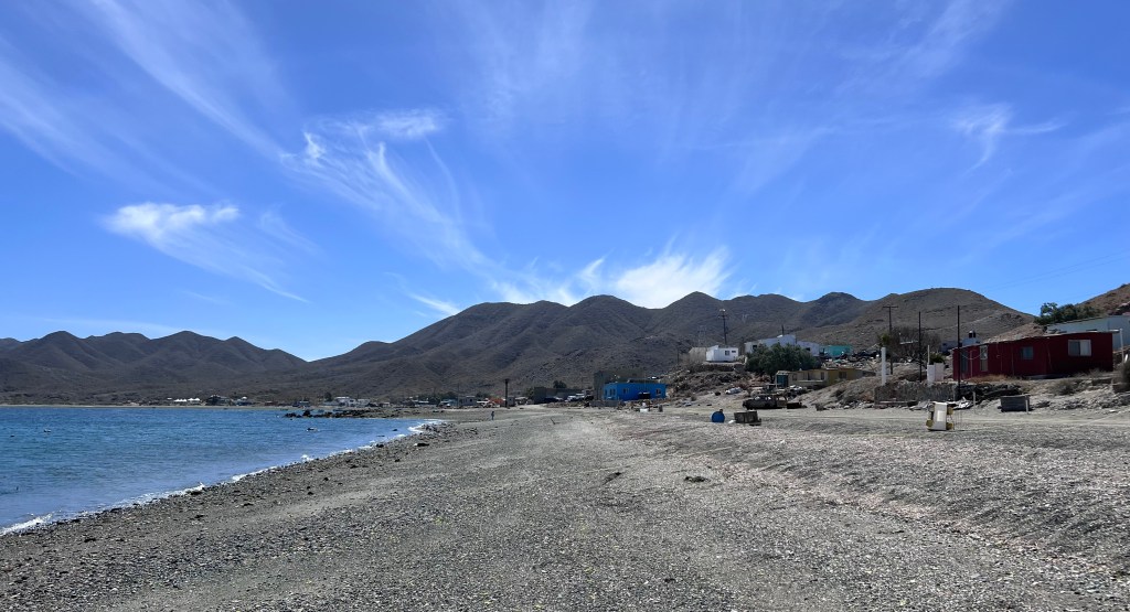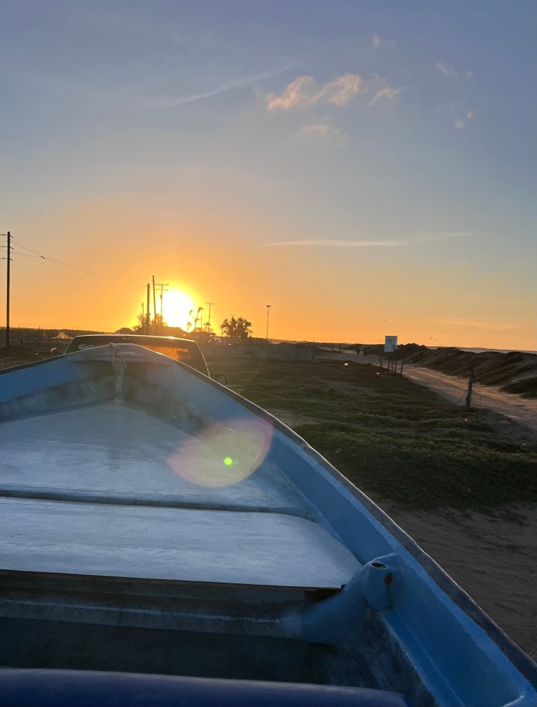 På väg tillbaka till ned/uppkörningsrampen är det så mycket ebb att båten släpar i botten en bit, lite oroliga att vi inte kommer att komma ända fram, en annan båt före oss körde fel och fastnade och fick gå i vattnet och dra båten en bit. Men det gick bra. Ägarinnan till hotellet hämtade oss med en pickup där männen fick sitta på flaket och jag och den andra kvinnan fick sitta i bilen. Väl framme vid hotellet packar vi ihop för att dra vidare för att sova i La Paz – vi ville inte stanna kvar i San Carlos eftersom man inte kan promenera fritt på grund av alla gatuhundar som kan bli aggressiva.
