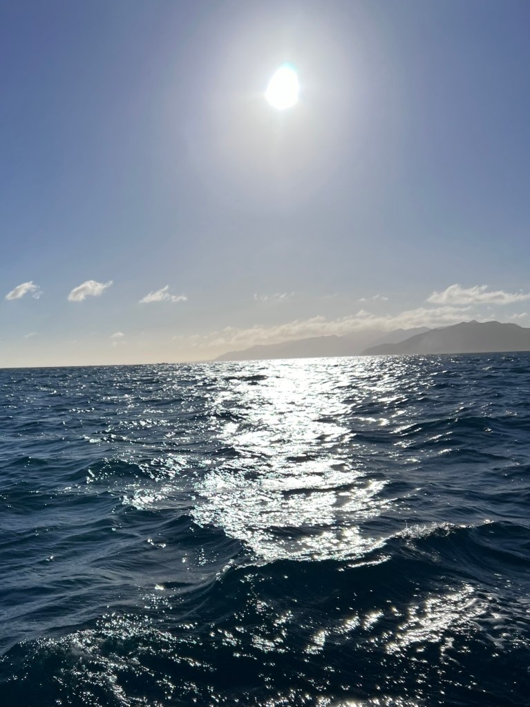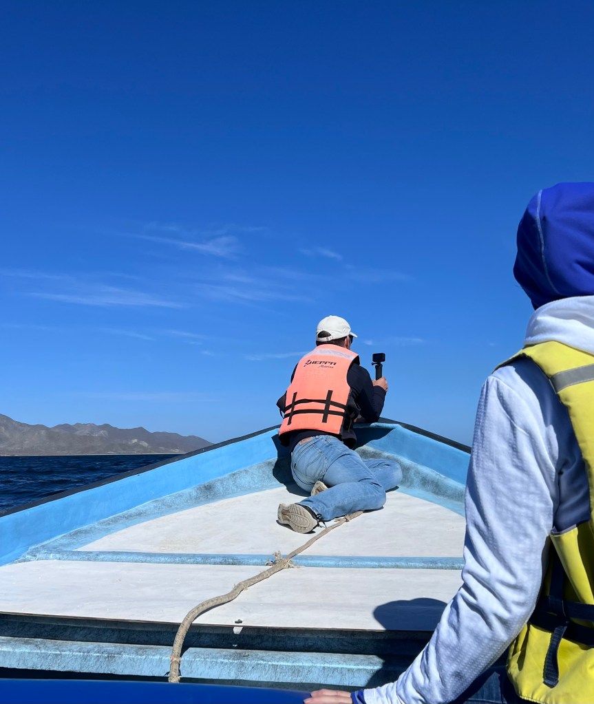 Klockan 7 hämtar Pepe oss vid hotellet, solen är precis på väg upp och vi får sätta oss i båten som han har på trailer bakom sin bil och kör oss till nedkörningsrampen. På vägen ut passerar vi en sandbank där pelikanerna sover på natten och fångar fisk ifrån – det var hur många pelikaner som helst där. Vi åker ut mot sundet mellan Magdalena Bay och Stilla havet där det är störst chans att se gråvalar. När vi passerar Magdalena Island ser vi ett gammalt valläger där de tog upp de valar de fångat och styckade upp dom och brände resterna i stora ugnar – idag en påminnelse om svunna tider då det inte var samma medvetenhet som idag hur valfångst påverkar populationen.