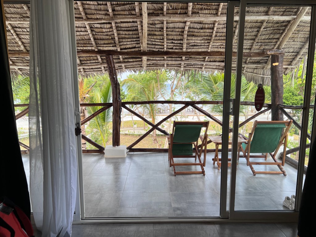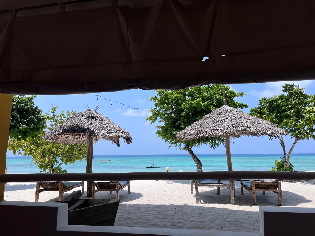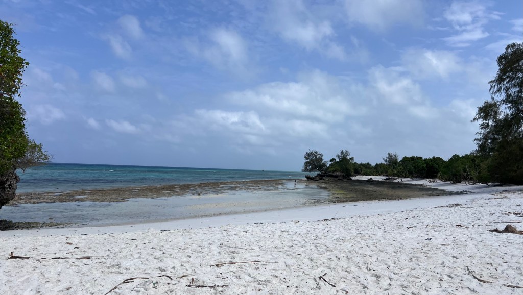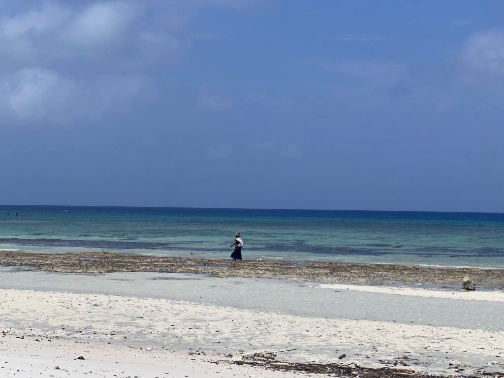 Jag blir hämtad av taxi kl.03.30 för att åka till flygplatsen. Supertrött. Sov oroligt för att försova mig. På flygplatsen får jag vänta drygt 1 timme innan jag får checka in. Fast jag har mer än 20 kg totalt behöver jag inte betala för övervikten. Kostar annars 2 USD/kg. Väl inne är det kaos när det fylls på med fler människor. Hallen är liten (för inrikesflyg) och den digitala tavlan som visar alla avgångar visar inte det flyg jag ska med. Jag frågar en personal om det och får till svar ”Don’t worry – pole pole, the announcement will be by that door” (?). Ibland dyker en människa upp i dörröppningen och ropar vilken flight som är aktuell, men då det hörs dåligt samlas alla människor vid dörren och blockerar för de som ska fram. Stress. Planet jag flyger med har 1 ensam stol, gång och 2 stolar – dvs litet. Flyget tar drygt 30 minuter men jag lyckas somna ändå. Jag blir hämtad på flygplatsen och skjutsad till hotellet och chauffören (som är från Pemba) berättar stolt en massa längsmed vägen. Växter, träd och alla frukter som växer – mango (5 olika sorter), guava, jackfruit (den som stinker när man öppnar den), kassava, 3 olika sorters bananer, cashewnötter, ananas. Han pekar också på alla kor (bundna vid pinnar i marken) och att de är det för ”naturlig gödning”. Jag lägger märke till att det inte alls är lika mycket plast och skräp längsmed vägen som det är på Ugunje – faktiskt väldigt fint. Vi åker förbi ett baobabträd – det kan bli 20 m högt och få en omkrets på upp till 14 m. Plötsligt stannar chauffören till där det sitter en gammal man och ett gäng yngre män, chauffören frågar om jag vill ha Pembakaffe – jag säger självklart ja. Vi sätter oss på en stock under taket där de andra sitter och får en liten liten kopp utan öra med superhett kaffe. Två av männen har sina döttrar med, den ena flicka (ca 3 år) blir obekväm när jag kommer och går. På hotellet när jag checkat in och packat upp det fina rummet en trappa upp med havsutsikt, tar jag en promenad på stranden och ser ormstjärnor (tror de heter så) i vattenpölarna som bildats. Sitter ner en stund och njuter av lugnet – inga människor som vill sälja en massa saker. Underbart. Även här syns tångodlingar som bruna fyrkanter i lågvattnet. Äter lunch på strandrestaurangen, de andra 6 gäster dyker också upp. Jag ska sitta på min terrass och dricka en kopp kaffe och greja med foton till bloggen, ett problem uppstår. En närgången kattunge hoppar upp i mitt knä och trots att jag sätter ner den flera gånger ger den sig inte – den SKA ha kärlek har den bestämt. Blir lite frustrerad då jag är allergisk mot pälsdjur och nu måste ta på den hur många gånger som helst. Ny plan. Jag tar allt och går till hotellets terrass framför huset där jag bor och tänker att den ger sig då. Icke. Den följer efter, jamlandes och så fort jag satt mig hoppar den upp i knät igen. Suck. Jag får ställa mig upp med kaffet precis vid kanten mot vattnet – då lufsar den iväg.