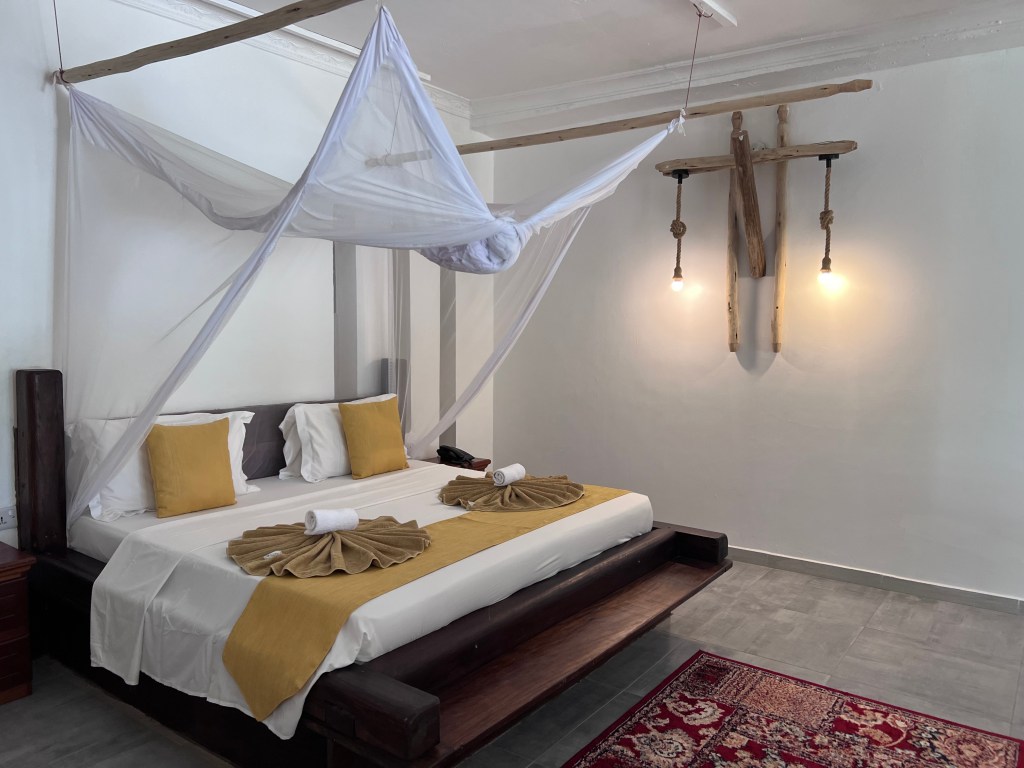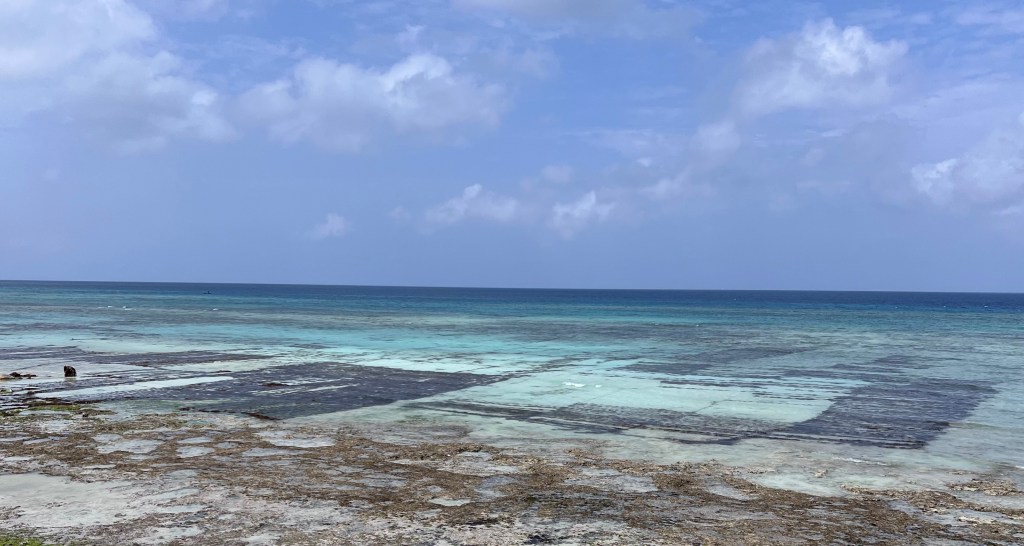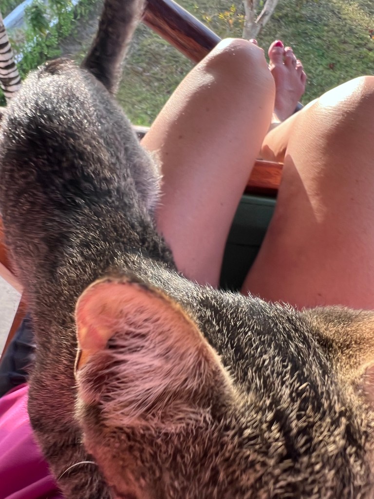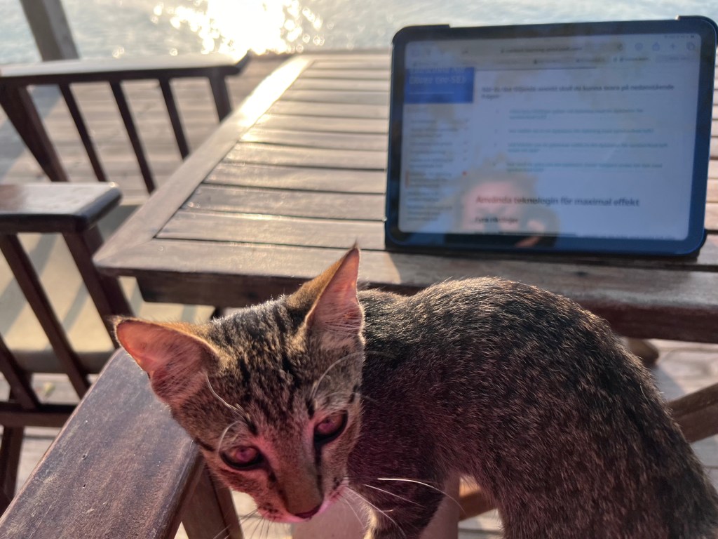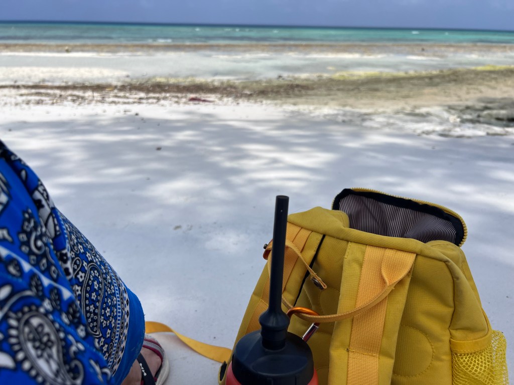 Jag blir hämtad av taxi kl.03.30 för att åka till flygplatsen. Supertrött. Sov oroligt för att försova mig. På flygplatsen får jag vänta drygt 1 timme innan jag får checka in. Fast jag har mer än 20 kg totalt behöver jag inte betala för övervikten. Kostar annars 2 USD/kg. Väl inne är det kaos när det fylls på med fler människor. Hallen är liten (för inrikesflyg) och den digitala tavlan som visar alla avgångar visar inte det flyg jag ska med. Jag frågar en personal om det och får till svar ”Don’t worry – pole pole, the announcement will be by that door” (?). Ibland dyker en människa upp i dörröppningen och ropar vilken flight som är aktuell, men då det hörs dåligt samlas alla människor vid dörren och blockerar för de som ska fram. Stress. Planet jag flyger med har 1 ensam stol, gång och 2 stolar – dvs litet. Flyget tar drygt 30 minuter men jag lyckas somna ändå. Jag blir hämtad på flygplatsen och skjutsad till hotellet och chauffören (som är från Pemba) berättar stolt en massa längsmed vägen. Växter, träd och alla frukter som växer – mango (5 olika sorter), guava, jackfruit (den som stinker när man öppnar den), kassava, 3 olika sorters bananer, cashewnötter, ananas. Han pekar också på alla kor (bundna vid pinnar i marken) och att de är det för ”naturlig gödning”. Jag lägger märke till att det inte alls är lika mycket plast och skräp längsmed vägen som det är på Ugunje – faktiskt väldigt fint. Vi åker förbi ett baobabträd – det kan bli 20 m högt och få en omkrets på upp till 14 m. Plötsligt stannar chauffören till där det sitter en gammal man och ett gäng yngre män, chauffören frågar om jag vill ha Pembakaffe – jag säger självklart ja. Vi sätter oss på en stock under taket där de andra sitter och får en liten liten kopp utan öra med superhett kaffe. Två av männen har sina döttrar med, den ena flicka (ca 3 år) blir obekväm när jag kommer och går. På hotellet när jag checkat in och packat upp det fina rummet en trappa upp med havsutsikt, tar jag en promenad på stranden och ser ormstjärnor (tror de heter så) i vattenpölarna som bildats. Sitter ner en stund och njuter av lugnet – inga människor som vill sälja en massa saker. Underbart. Även här syns tångodlingar som bruna fyrkanter i lågvattnet. Äter lunch på strandrestaurangen, de andra 6 gäster dyker också upp. Jag ska sitta på min terrass och dricka en kopp kaffe och greja med foton till bloggen, ett problem uppstår. En närgången kattunge hoppar upp i mitt knä och trots att jag sätter ner den flera gånger ger den sig inte – den SKA ha kärlek har den bestämt. Blir lite frustrerad då jag är allergisk mot pälsdjur och nu måste ta på den hur många gånger som helst. Ny plan. Jag tar allt och går till hotellets terrass framför huset där jag bor och tänker att den ger sig då. Icke. Den följer efter, jamlandes och så fort jag satt mig hoppar den upp i knät igen. Suck. Jag får ställa mig upp med kaffet precis vid kanten mot vattnet – då lufsar den iväg.