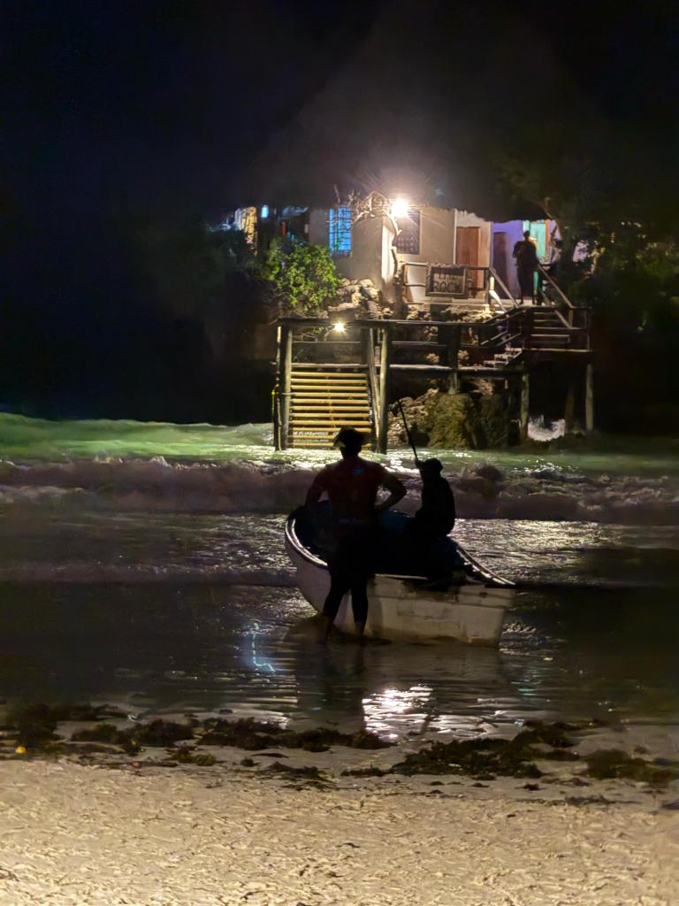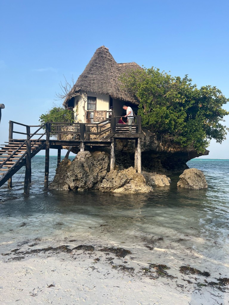 Tillbaka till hotellet badar och slappar vi ett tag innan vi blir skjutsade till ”The Rock”, en restaurang som ligger på en klippa en bit ut i vattnet. När det är lågvatten kan man gå, annars båt. Vi dricker bubbel och sjunger för de två som fyllt jämnt, äter gott och njuter av det ovanliga och mysiga stället. Vi har 2 timmar på oss och när det är dags att gå är det högvatten och en båt med två förare väntar vid trappan. Det är svårt att kliva ombord då det blåser och är vågor. Men vi kommer säkert iland.